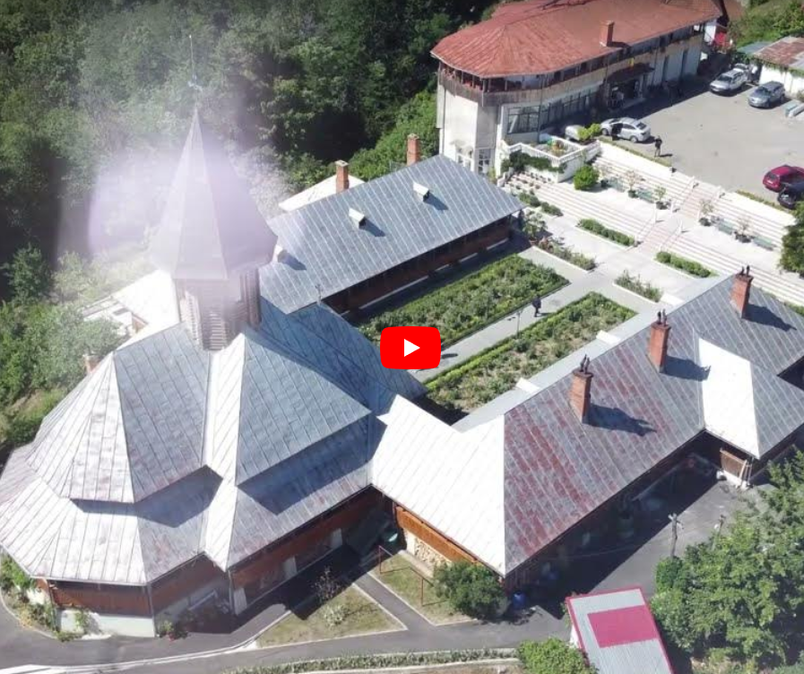 Survol aerian al Manastirii Sf Ana, de pe malul Dunarii, in sudul Romaniei.
